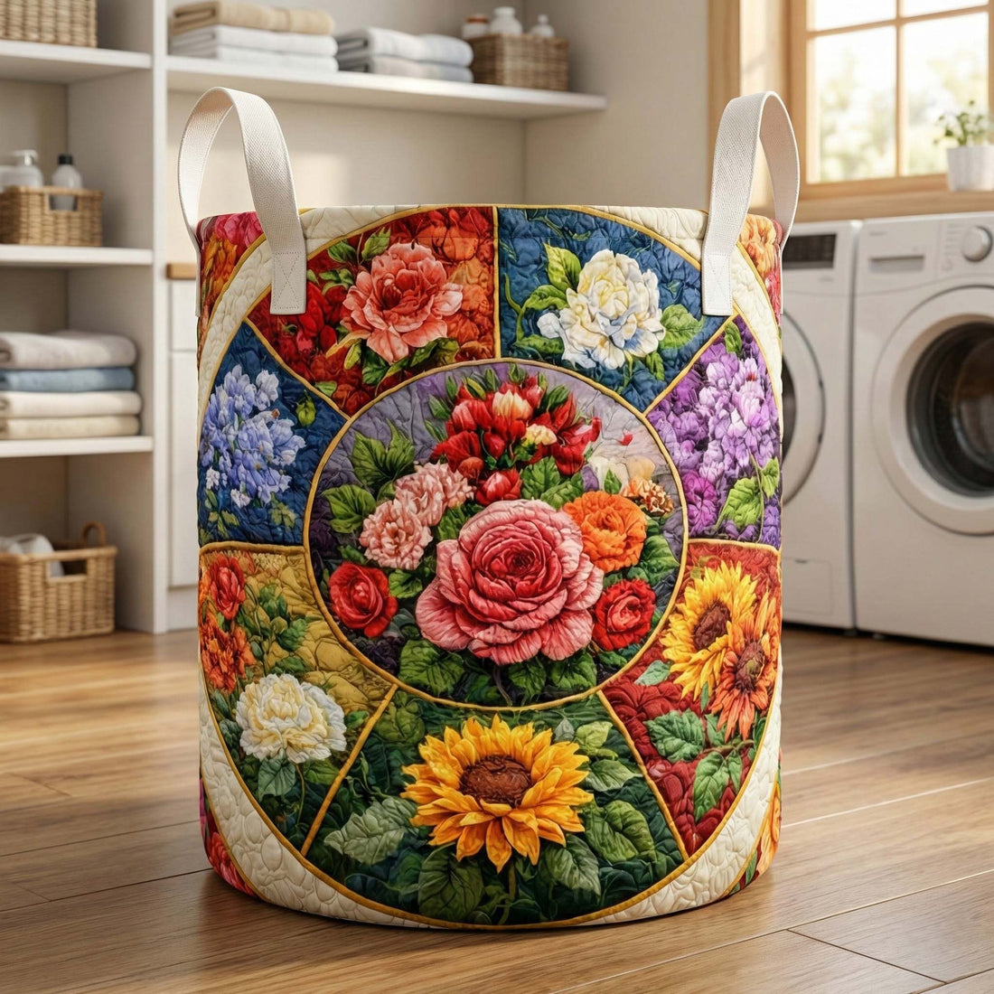 Floral Serenity Quilted Laundry Basket GFTOQA1623