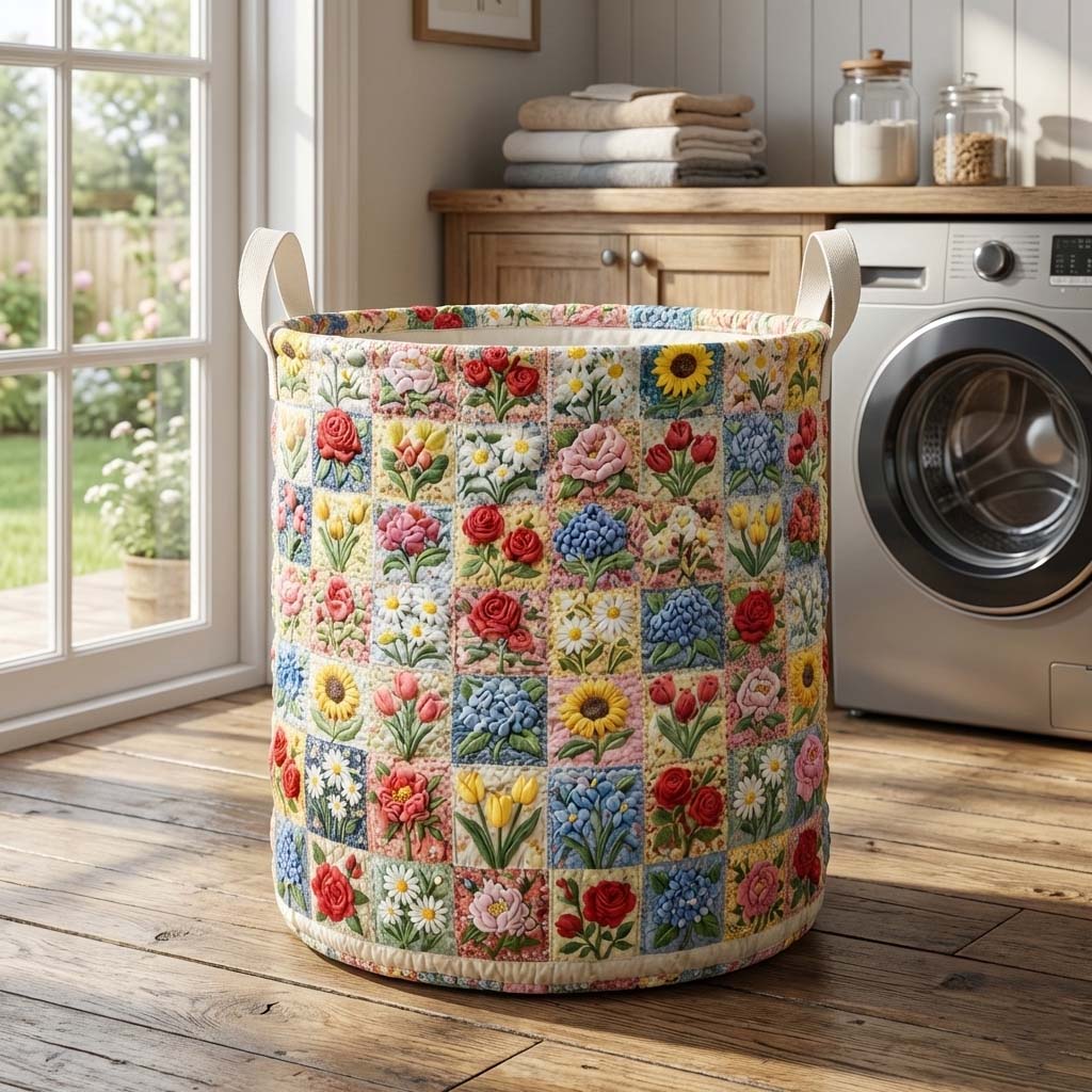 Floral Serenity Quilted Laundry Basket GFTOQA1617
