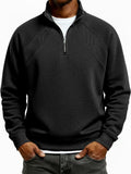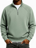 Men's Quarter-Zip Ribbed Raglan Textured Pullover Sweatshirt