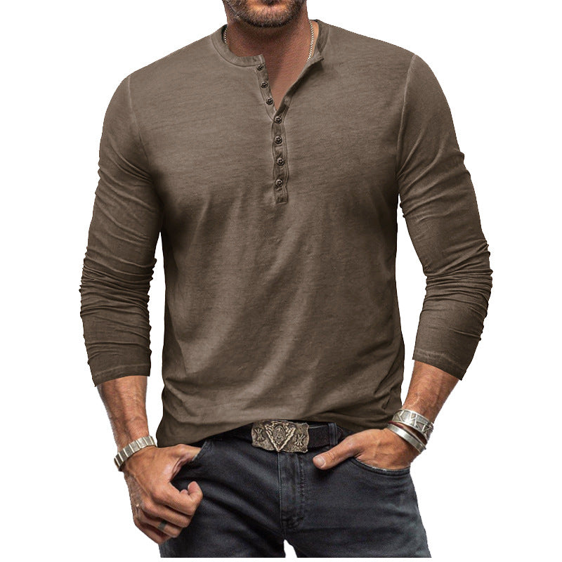 Men's tie-dye Henley Button-up Slim-fit Long-sleeved T-shirt