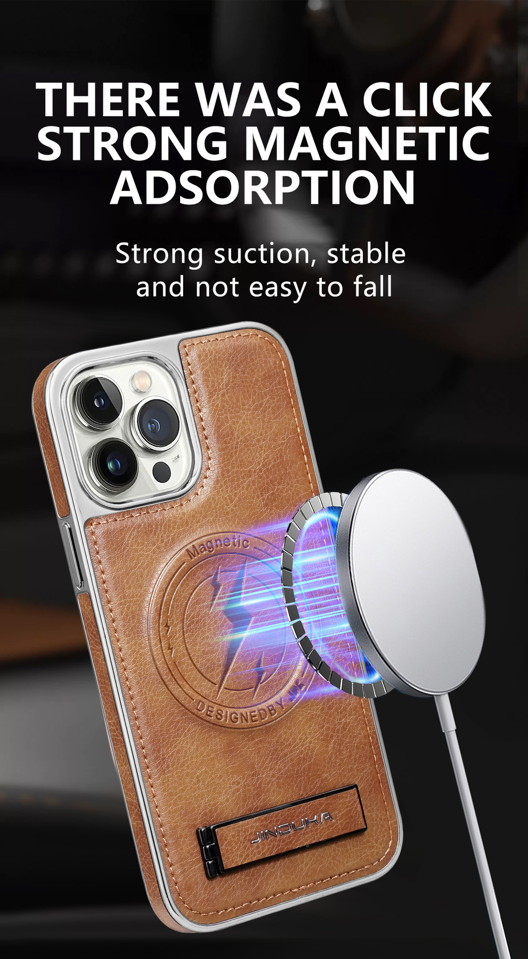 Étui magnétique en cuir de qualité supérieure pour téléphone avec support intégré