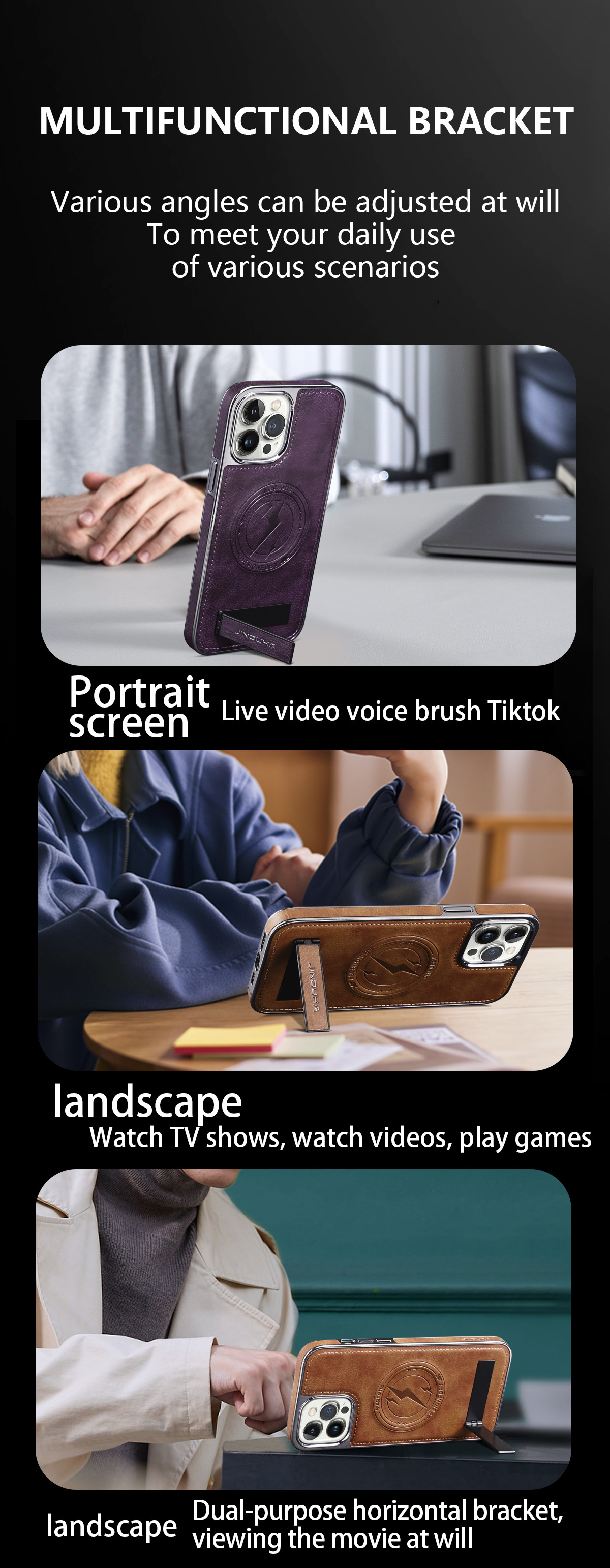 Support multifonctionnel : Le support intégré permet un visionnage mains libres pratique. Idéal pour regarder des vidéos, passer des appels vidéo ou naviguer sur Internet, il offre une orientation portrait et paysage.