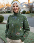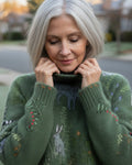 Des motifs tricotés complexes sur le thème de la forêt qui apportent un charme rustique et chaleureux à votre garde-robe d'hiver. -