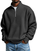 Men's Daily Loose And Simple Waffle Half-zip Stand Collar Long-sleeved Polo Shirt